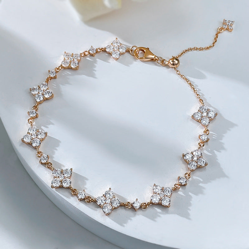 Pulsera CrownJewel de plata de ley 925 con forma de flor de diamante