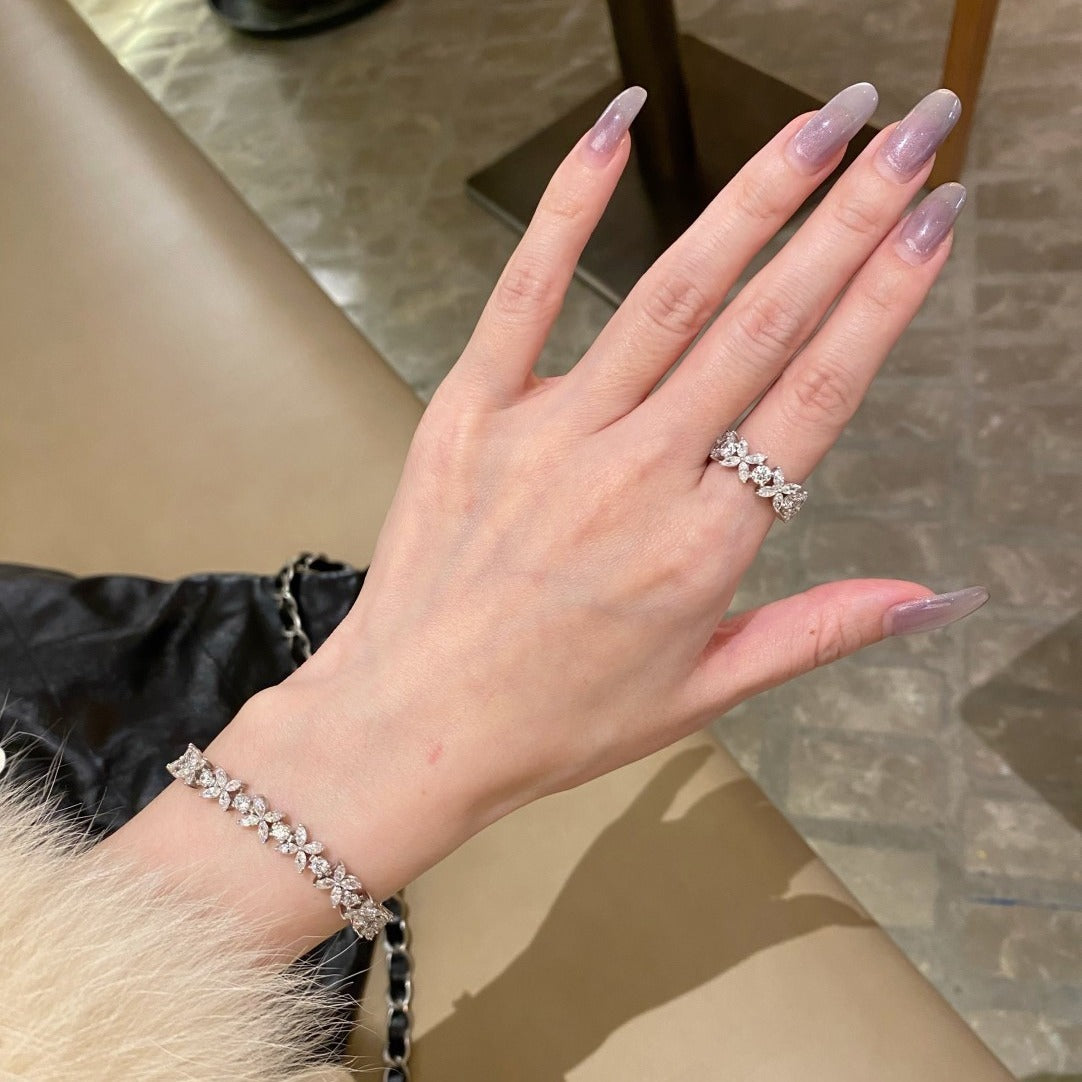 Anillo CrownJewel en plata de ley con forma de flor y repleto de diamantes