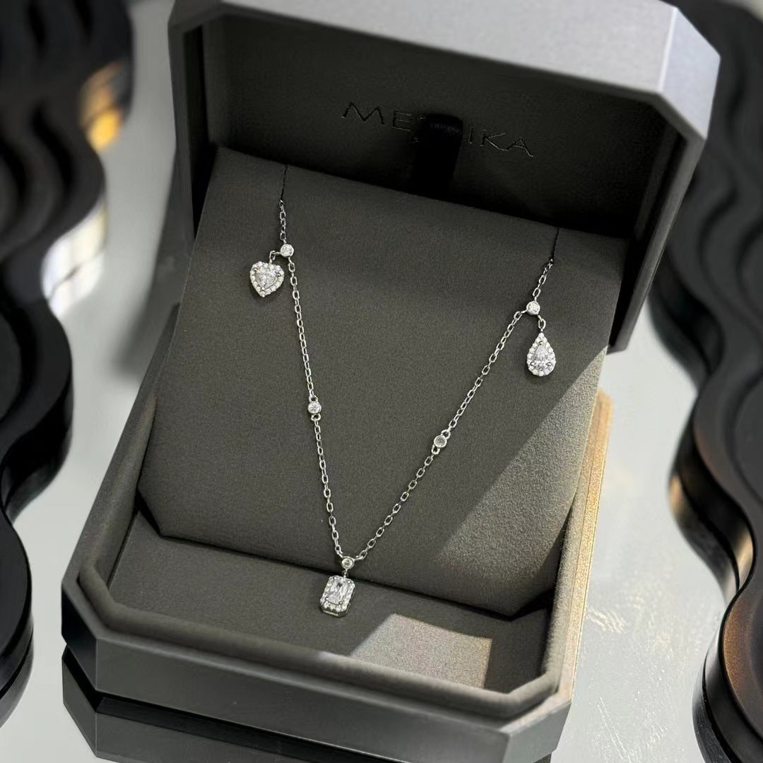 Drop-shaped diamond inlaid pendant with fashionable tassel design